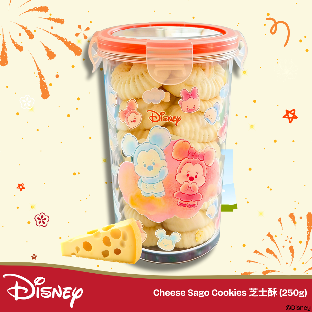 Cheese sago cookies with a light, crumbly texture and a savoury-cheesy aroma in every bite. Packed in a 4-side lock airtight container to preserve freshness — a delightful treat for festive sharing.